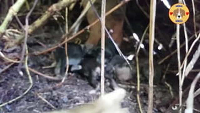H1902001_Abandoned mom her puppies survive under brid