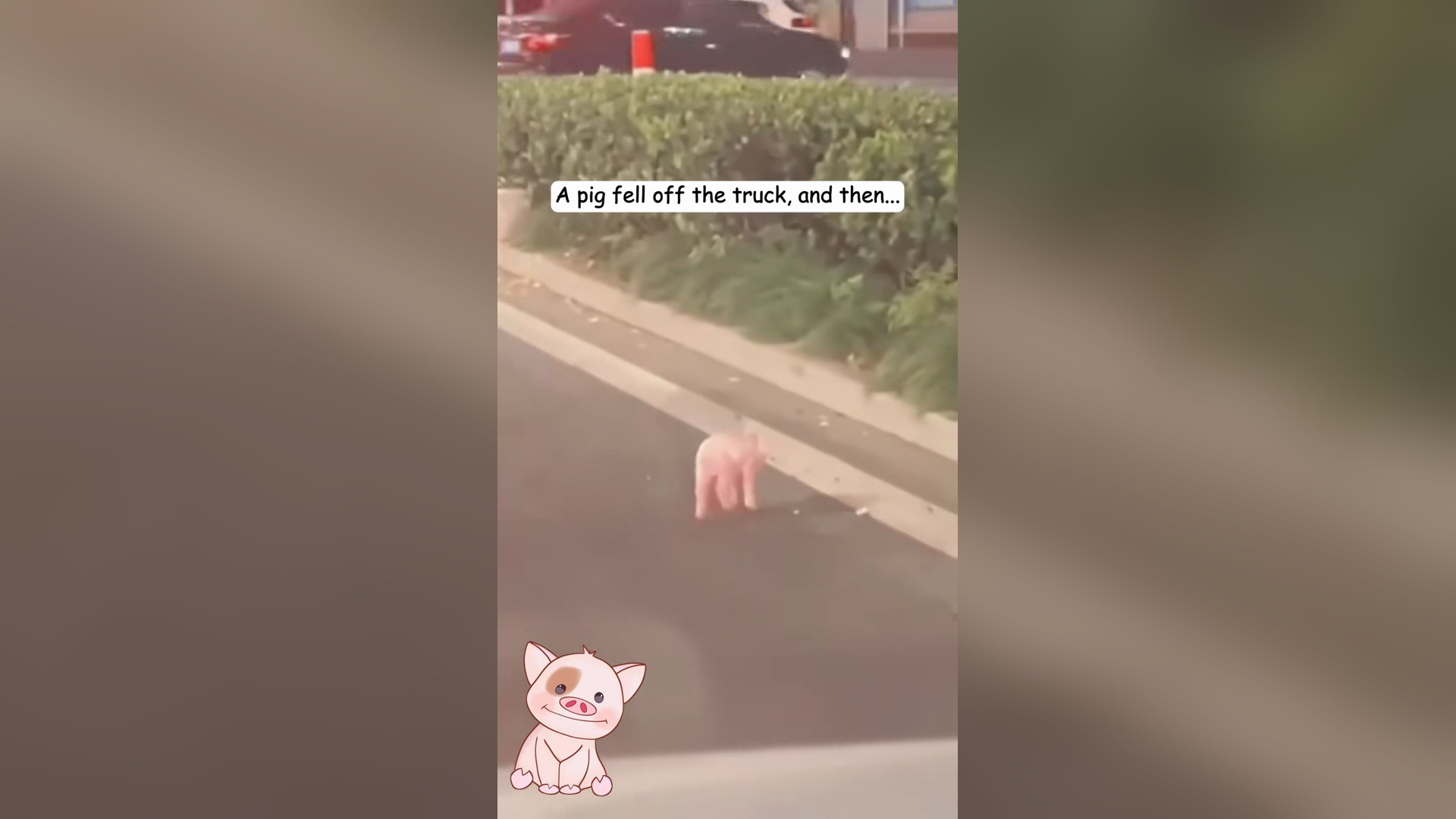 Breaking News: H3003046_pig fell off truck, then…#fyp #animal