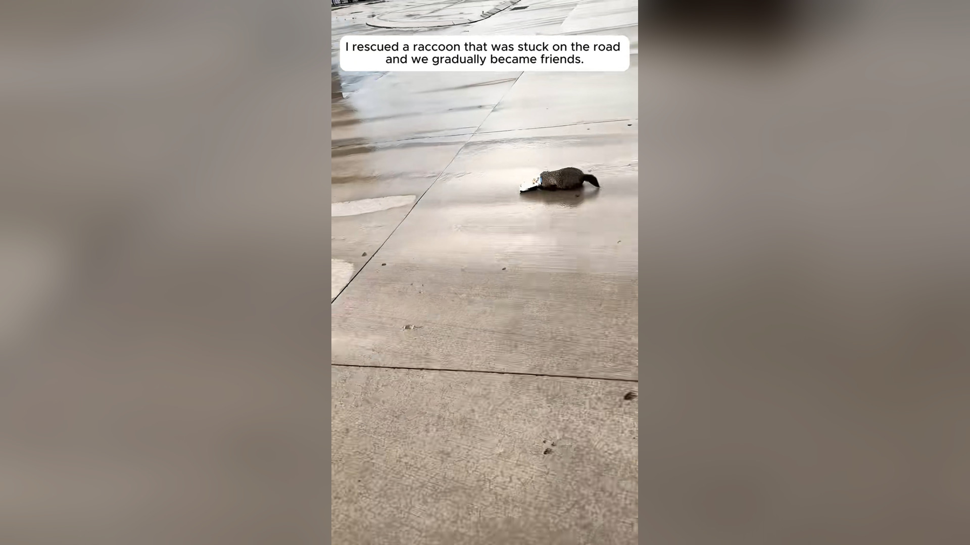 H1804065_rescued raccoon was stuck on road