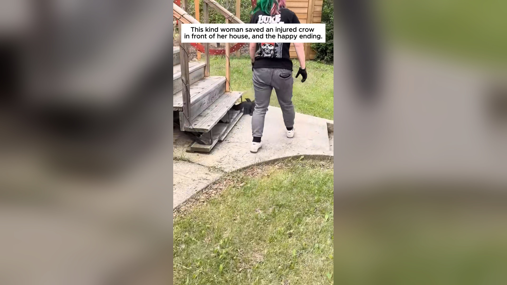 H2504021_kind woman saved an injured crow in front of