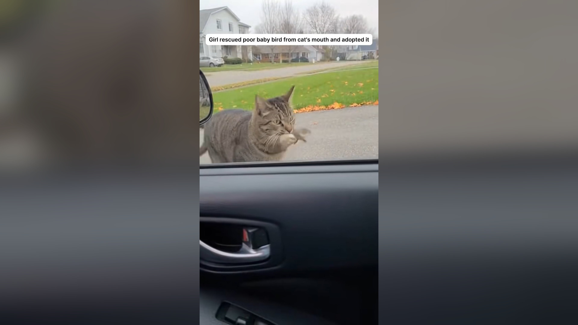 • H2504003_Girl rescued poor baby bird cat mouth