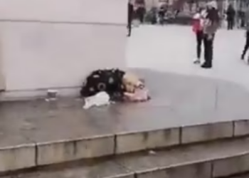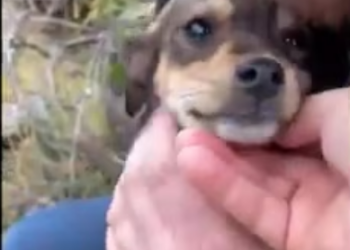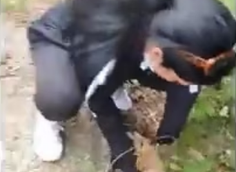H0602005_Two terrified puppies, abandoned by road, cryi