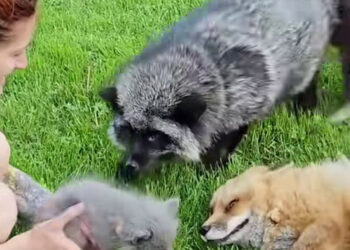 H0703006 girl helpsthe baby fox find its mother