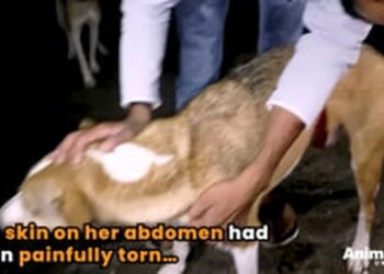 H1403020_Dog fall into deep pit almost kills her. But res